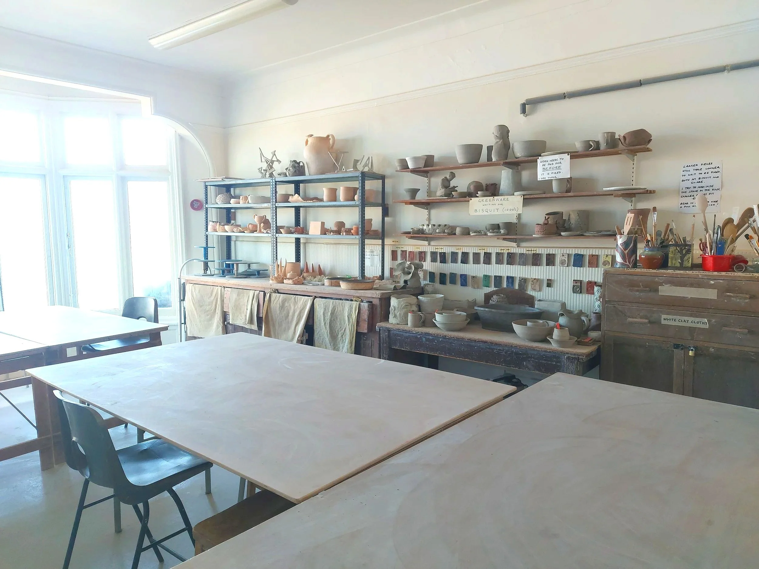Material costs: The cost of finished work is calculated by weight to cover the cost of materials involved e.g. clay, glaze, firings. Minimum charges (up to 8oz) are 70p/80p/£1, depending on type of clay. All fired work must be collected and paid for.