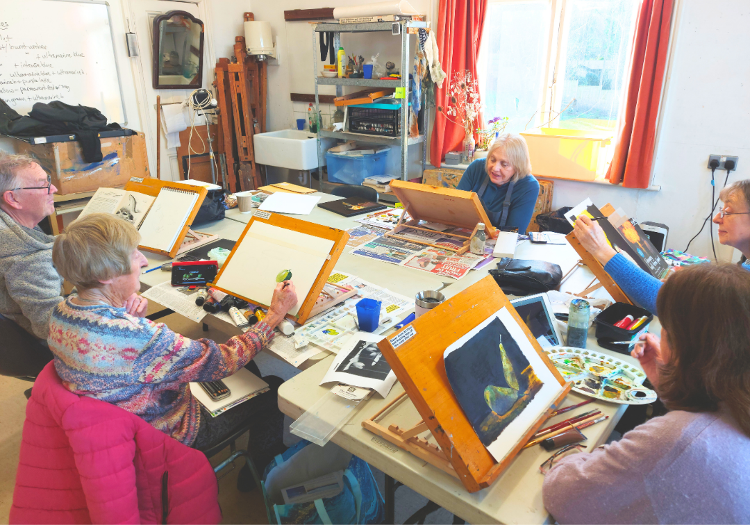 The course provides instruction in many of the facets of art: starting with drawing in pencils, charcoal and pastels (both chalk and oil), before moving into acrylics and watercolours. Oil paints may be used if requested. We’ll look at proportions, colour-mixing and the colour wheel, and differing painting techniques such as palette knives and the use of glazes. The course is for mixed abilities from beginners to the more experienced.